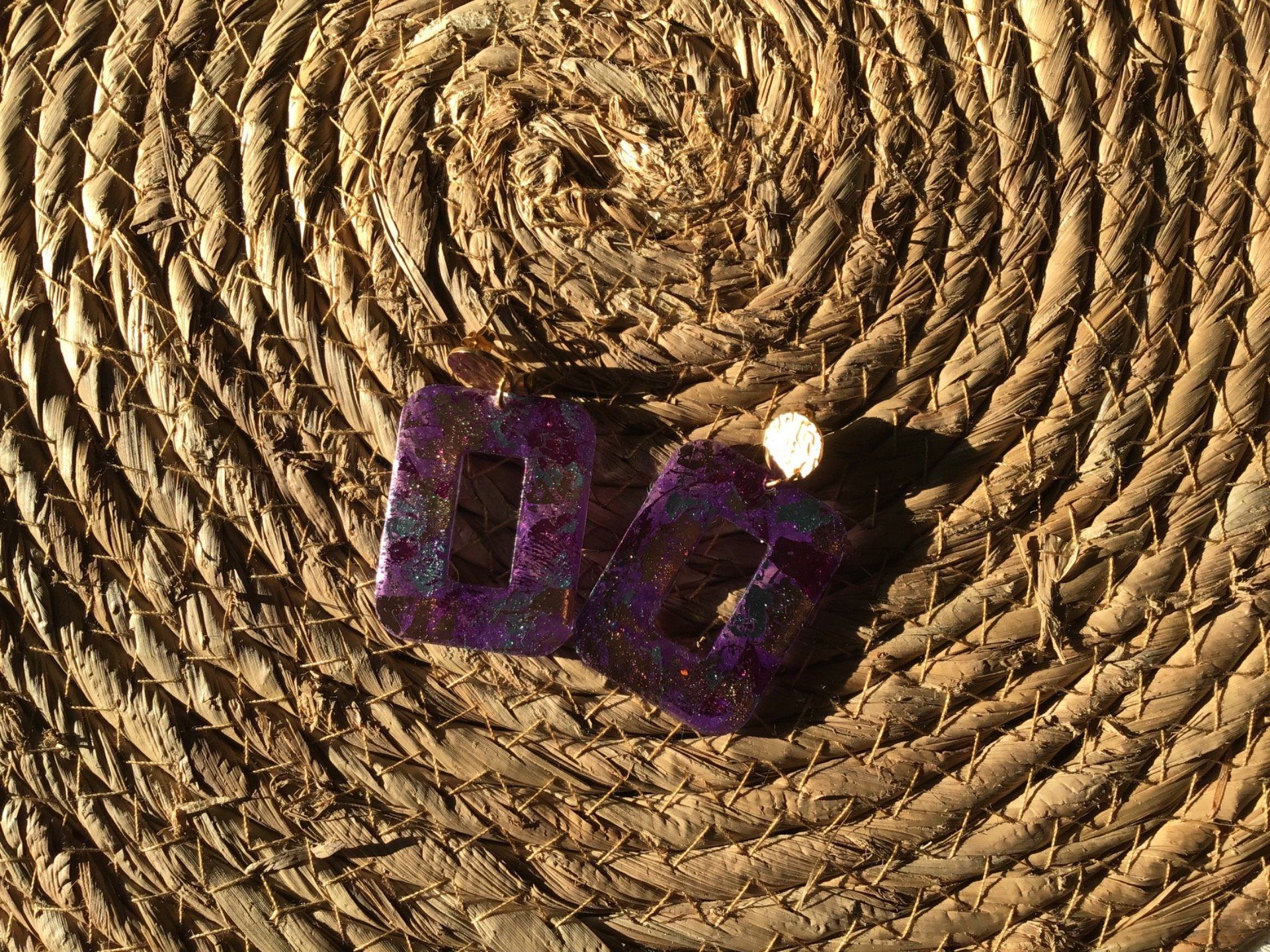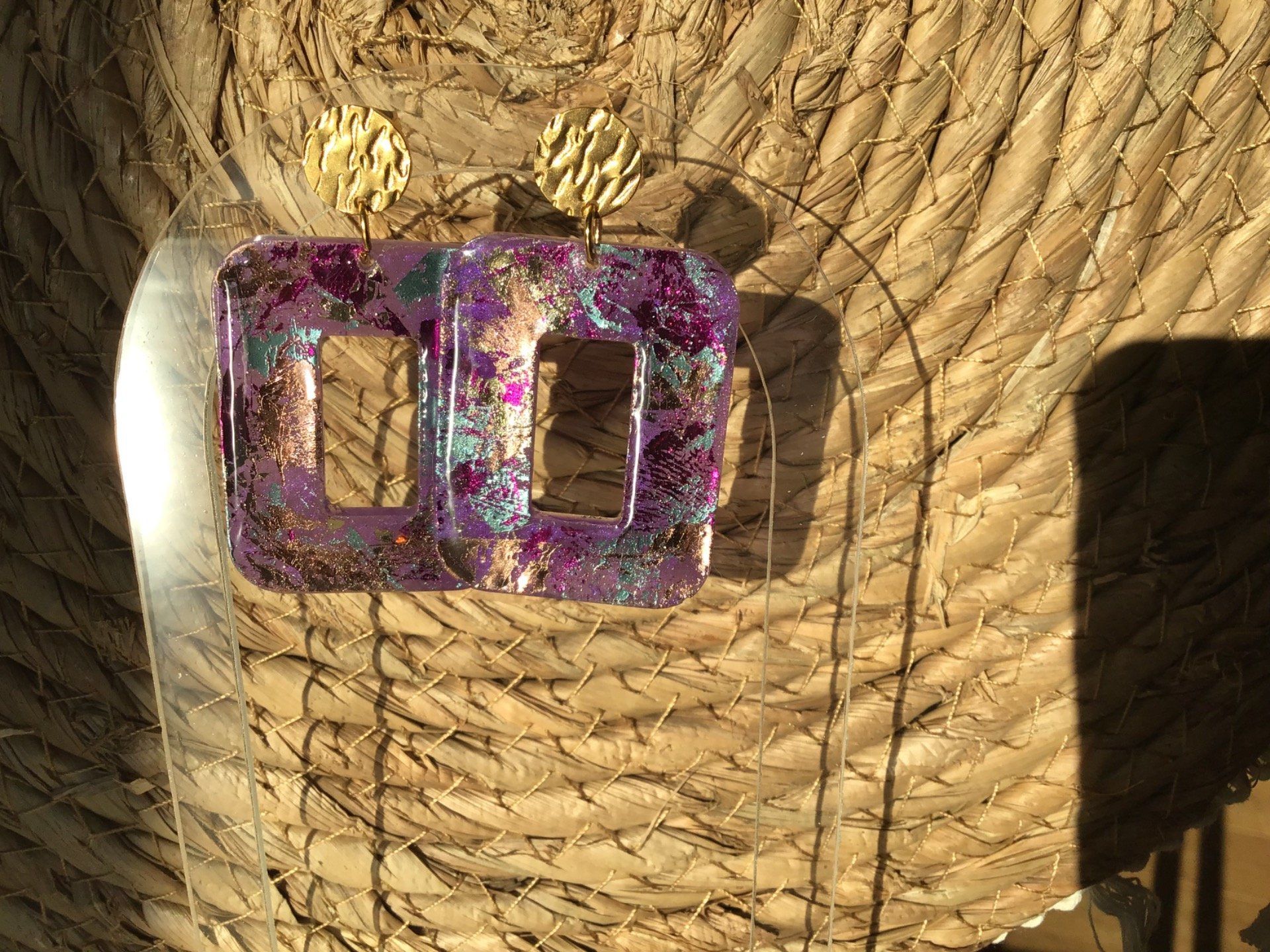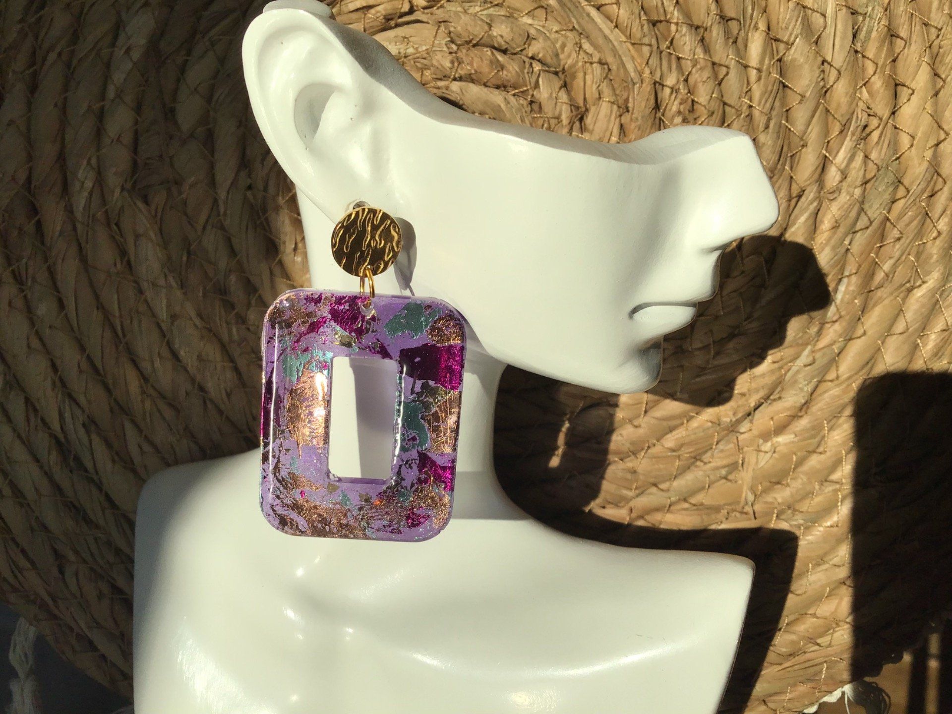 Boucles d'oreilles aux reflets hypnotiques, grâce à des foils irisés et dorés.