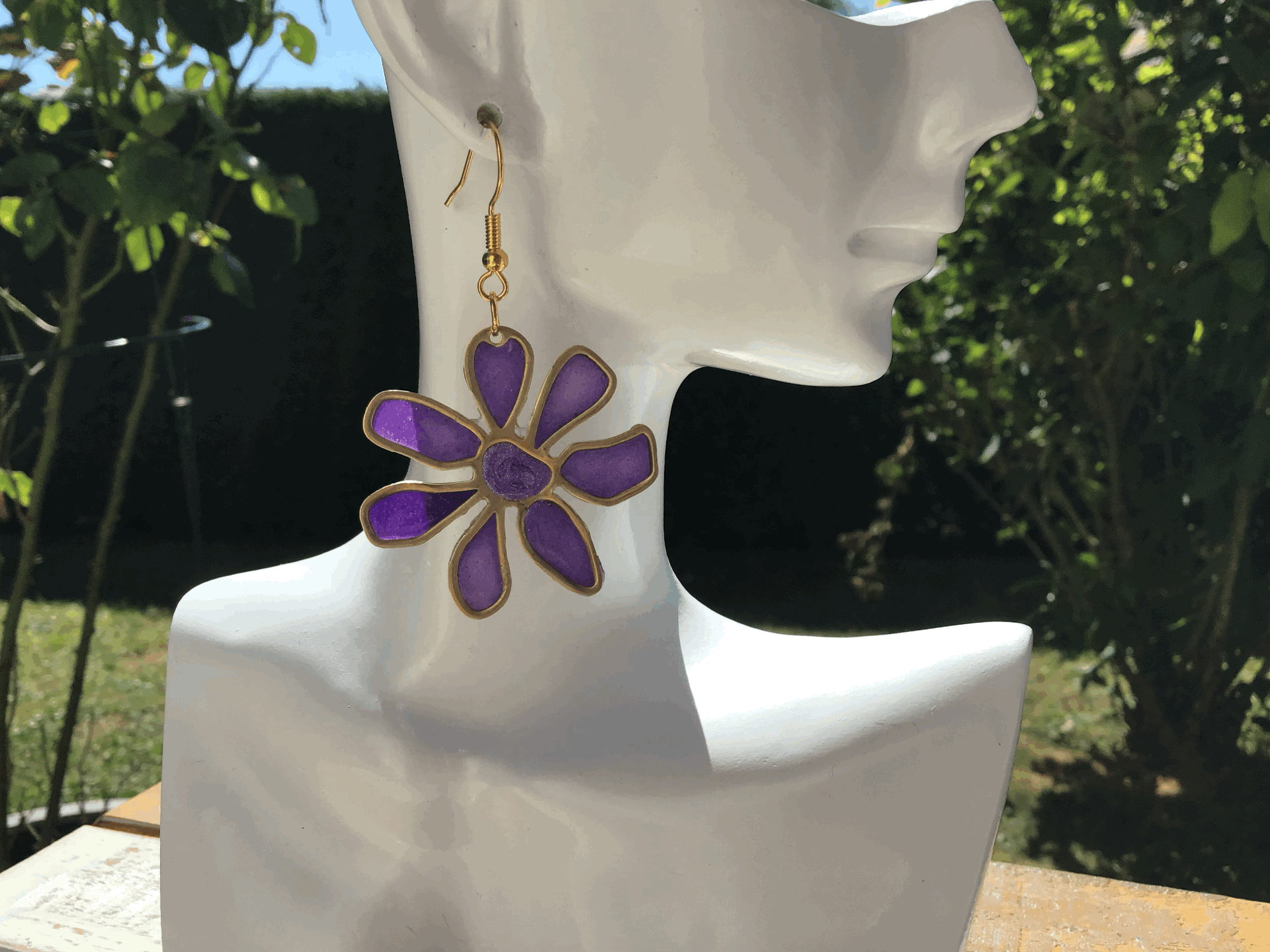 Inspirées par la vitalité des champs ensoleillés, ces boucles d'oreilles en forme de marguerite éclatent d'un violet profond et mystérieux.